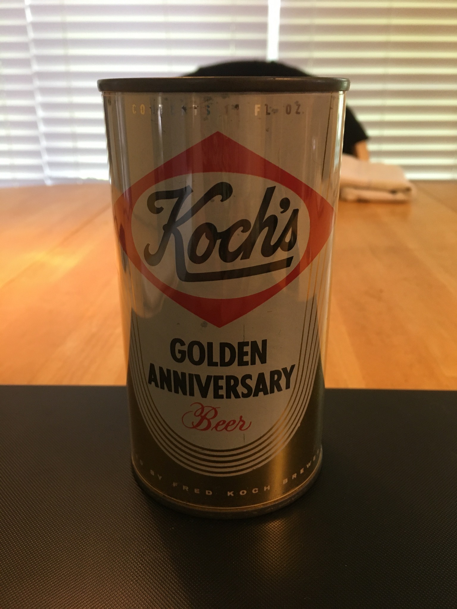 | TBD | v2_85-29 | Koch's (Golden Anniversary) Beer, FT Souvenir Produced at Brewery, Nice Empty Indoor Can | Front 90° 90° 90° Top Bottom | $20. | 1/1- | TBD | $5. | TBD |